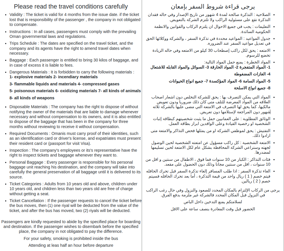Gulf Transport Company (GTC) was established in 1990 and is considered one of the first companies operating in the field of passenger transportation inside and outside the Sultanate . The company's headquarters are in Salalah and Ruwi, and it has branches in rusail, Ghala, Maabila, Baraka, Nizwa, Adm, Haima, thumrait, Taqah, Saada, industrial Salalah and Raysut, providing our services to passengers. The company has been developing its fleet with many new VIP buses that may not be available from other companies. The company pays attention to the preventive and subsequent maintenance of its buses to serve the comfort of passengers and avoid breakdowns to a large extent. The company operates between 9-11 trips a day between the capital Muscat and Salalah, and this trips are increases on occasions and in the autumn season, and trips to Dubai and Sewon. All buses are equipped with unlimited internet access with a mobile charger. The company provides mobile workshops on the road to provide repair service whenever the case requires. Computer systems have been introduced in many of the company's works, both in the field of ticket booking and the parcel transfer and in other technical and administrative fields.